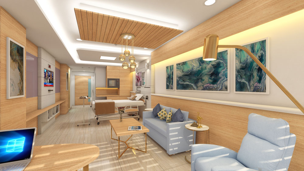 Internally, spatial zoning ensures efficient clinical adjacencies, clear flow segregation, and intuitive navigation. Modular ICU and OT layouts offer flexibility and infection control, while waiting areas integrate biophilic inserts, acoustic balance, and natural materiality to foster calm. Circulation cores anchor departmental logic and enable operational clarity.